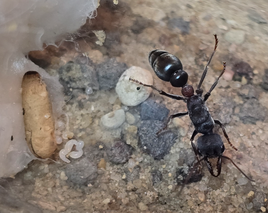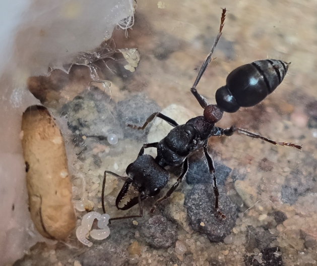 mit einem Holzspieß die Brut umsetzen. Einen gewissen Respekt vor Myrmecia sollte man dennoch haben -